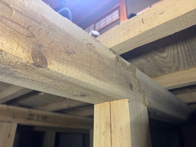 畳を上げた際にシロアリ被害を発見し、弊社にご連絡をいただき調査を行いました。