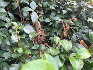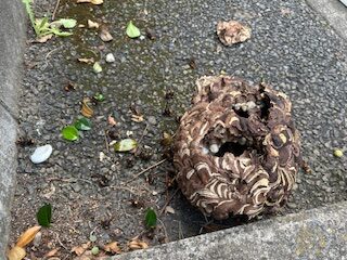 植栽に埋まって、高所な部分に蜂の巣がありました!