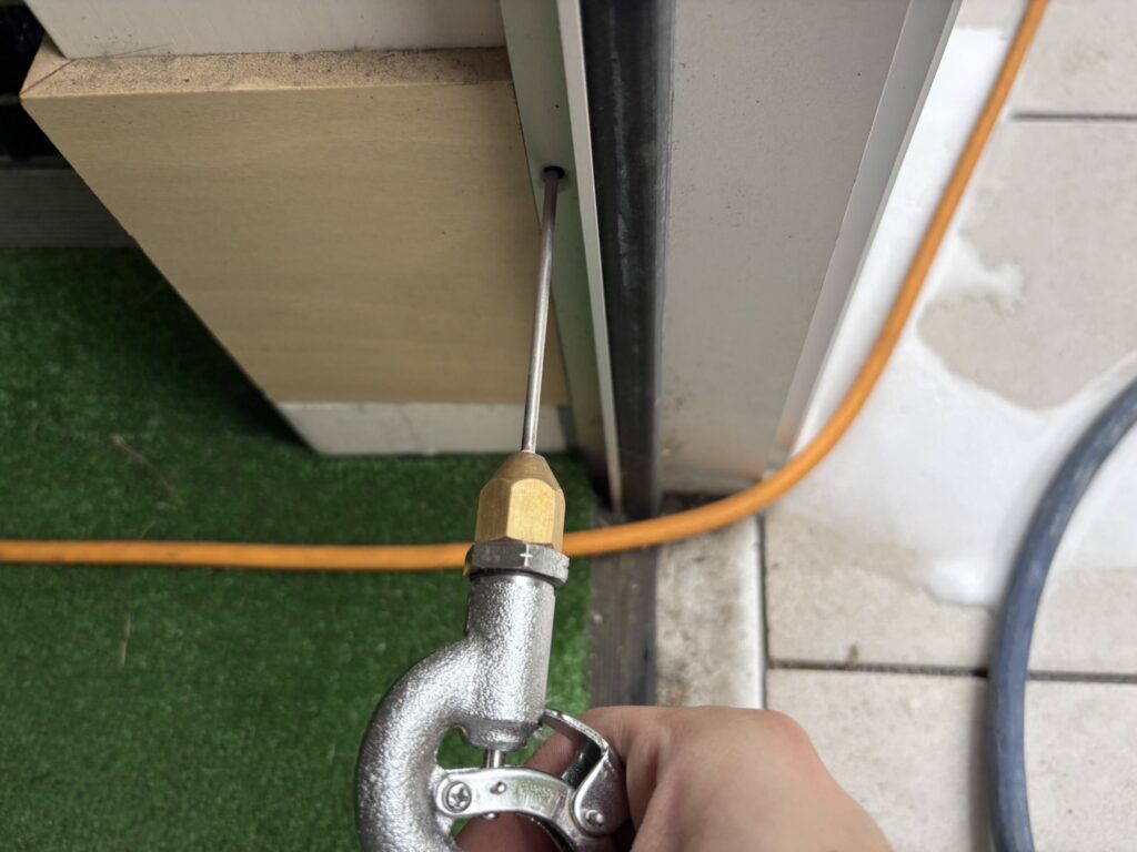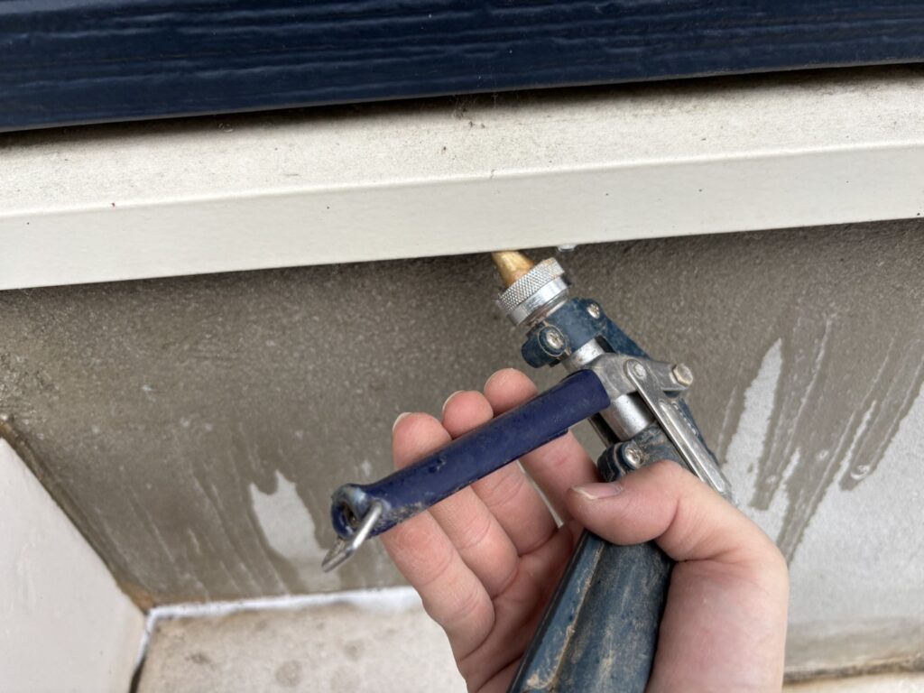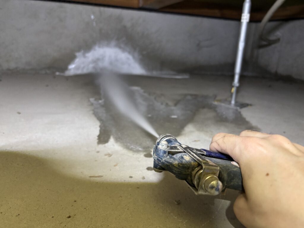 潜れる床下がない部分もシロアリ被害にあわないように薬剤注入・散布をしていきます!!