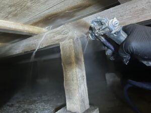 本日は、伊奈町にてシロアリ予防工事と排水管高圧洗浄を行いました。
