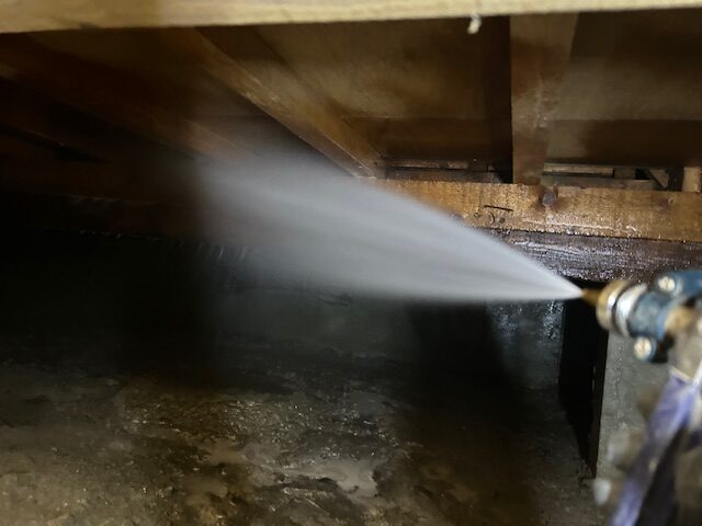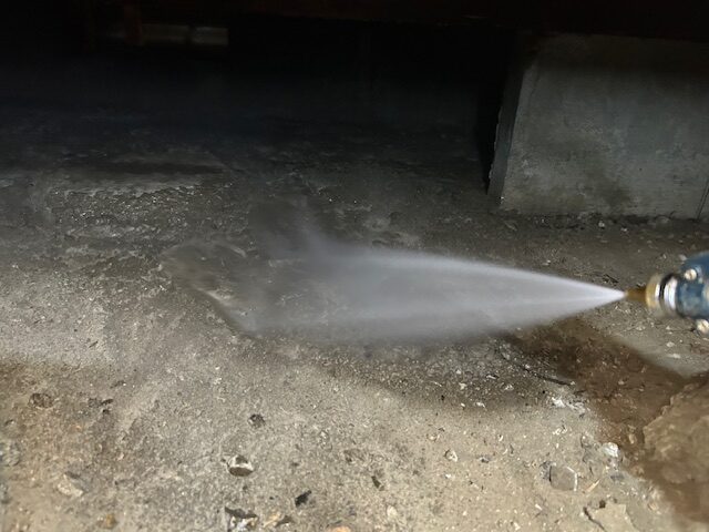 これらを床下で部分的に壊し(はつり)・撤去し、補修・交換する工事です。