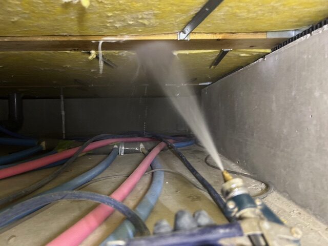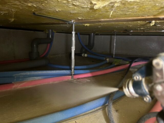 本日は、埼玉県加須市花崎にてシロアリ予防工事と排水管高圧洗浄を行いました。